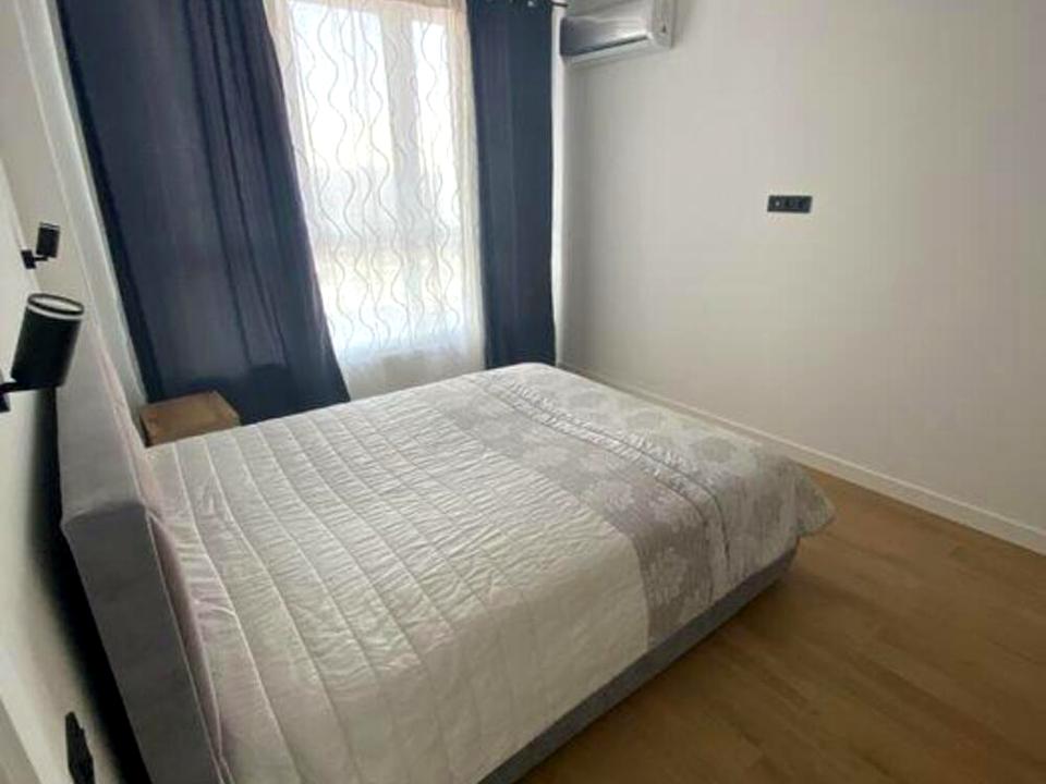 У квартирі зроблено якісний ремонт, встановлено підігрів підлоги та кондиціонер. Є вбудована кухня, побутова техніка, двоспальне ліжко, шафа-купе, стіл і стільці — усе входить у вартість. З вікон відкривається краєвид на правий берег і Дніпро.