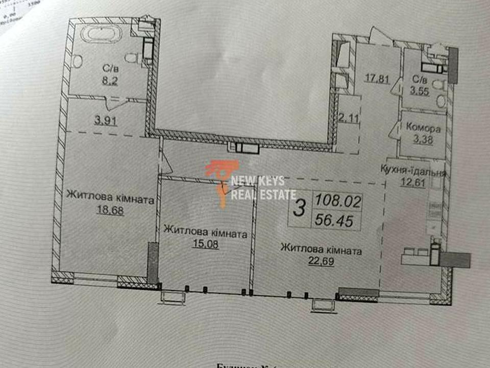 В квартирі 3 кімнати. В квартирі є . Загальний стан квартири - Без ремонту. Без комісії