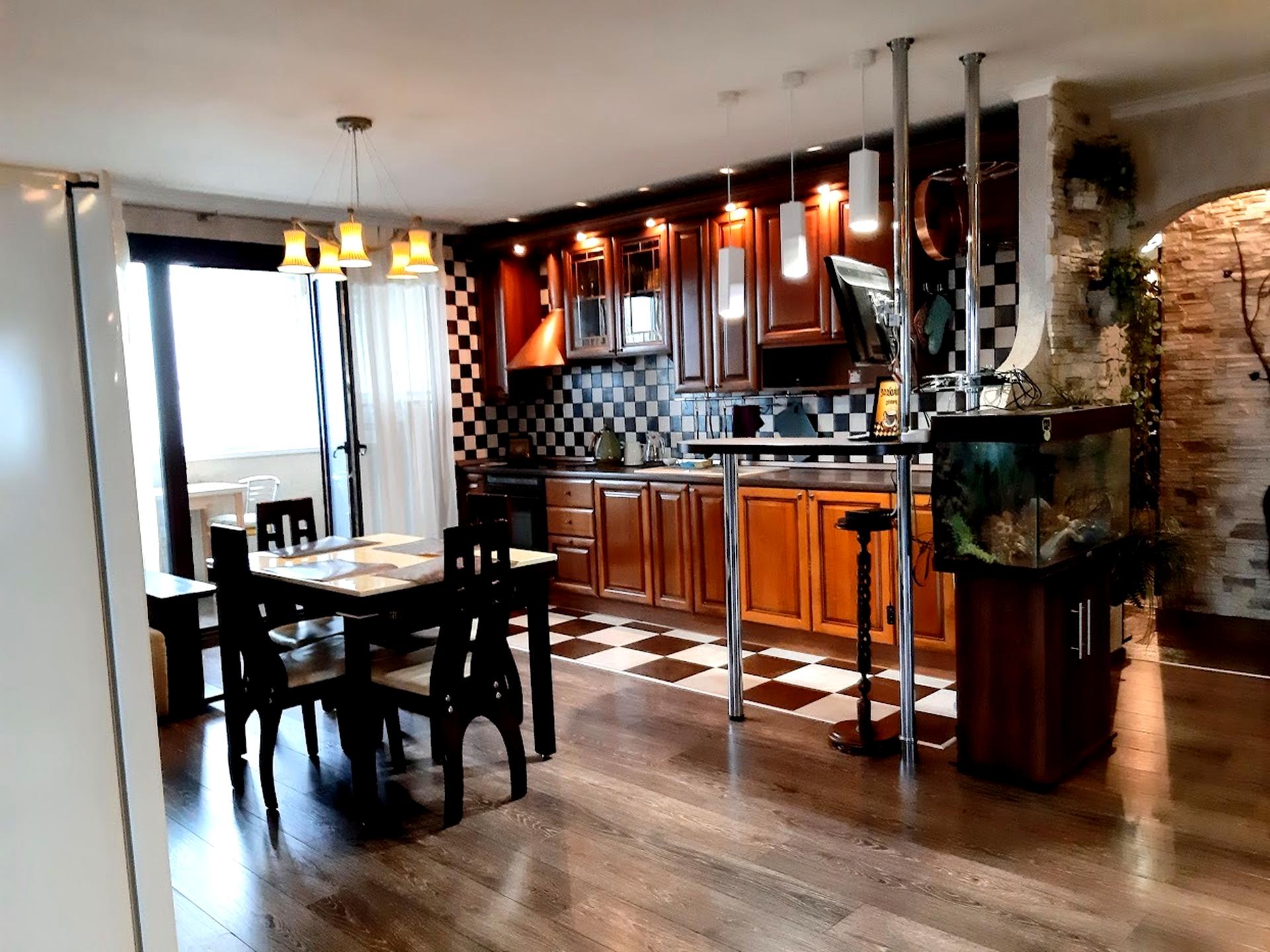 БЕЗ КОМИССИОННЫХ! Продажа 4-комнатной, двухсторонней квартиры. 14-й/18-этажного дома, расположенного на ул. Дмитрия Чижевского (Чаадаева), 2-Б, Святошинский район, Никольская Борщаговка, вблизи Урочища "Совки". Материалы конструкций дома: керамзито-бетонная панель с внешним утеплением. Фасад, парадное сквозное, есть выход во двор с тыльной стороны дома. Параметры квартиры: 140,1/78,1 (м²), кухня -18, 8 м²; высота потолков – 2,75 м. Архитектурно-планировочное решение: кухня- столовая с выходом на застекленную лоджию, гостиная, 2 спальни (одна из них с выходом на застекленную лоджию), 2 санузла с душевой кабиной и огромной ванной, находящейся на подиуме, комплексно оформленной мозаикой. В квартире выполнен дизайнерский ремонт с разнообразным эксклюзивным освещением, с использованием высококачественных материалов. Пол: паркетная доска + керамическая плитка; стены: обои, декоративная объемная штукатурка с сегментом художественной ковки в прихожей. Мебель: корпусная и мягкая. В прихожей огромный шкаф-купе с зеркальными дверцами. Кухня встроенная с оригинальной небольшой барной стойкой в комплекте. Бытовая техника: индукционная варочная поверхность «SIMENS», вытяжка, посудомоечная машина «Ariston», духовой шкаф «MCROWELLE PLUS», холодильник, состоящий из 2-х вертикальных блоков (низкотемпературный, среднетемпературный) «SAMSUNG», стиральная машина «INDESIT», музыкальный центр «PHILIPS», бойлер «Garanterm» (100 л – производительность), кондиционеры «DEKKER», телевизоры («SONY», «LG», «SAMSUNG», «BBA», «TOSHIBA»). Интернет - Lanet. Горячее водоснабжение от бойлера. Отопление централизованное. Радиаторы с регуляторами тепла. Счетчики расхода холодной воды, электроэнергии. В доме 2 лифта: пассажирский, грузовой. Генератора нет. Парадное красивое и укомплектовано мебелью для отдыха. Есть почтомат. Работает круглосуточно консьерж. В доме, в подвале, есть укрытие, комфортно оборудованное с санузлом и душевой кабиной. Внутренний двор с детской площадкой огражден с входом только для жильцов дома. Паркинг наземный, платный (также огражден). Подземный паркинг есть в соседнем доме. Управляющая компания ОСББ «Чаадаева-2». Социальная инфраструктура: вблизи гипермаркет «NOVUS», магазины промышленной, продовольственной группы, кафе, рестораны, аптеки, рынок, поликлиника. Лицей, школы, детские сады. Транспортная инфраструктура насыщенная: троллейбусы, автобусы, маршрутные такси, доставляющие к ст. м «Святошин», «Нивки». Также в 20 мин. пешком – скоростной трамвай, двигающийся в Центр и на ж-д вокзал «Центральный». Рекреационный потенциал: рядом огромный лесопарк, преимущественно, хвойный, благоустроенный с детскими площадками «Урочище Совки». Документам более 3-х лет. В квартире никто не прописан. Прямая продажа. Цена - 155000$. Торг.