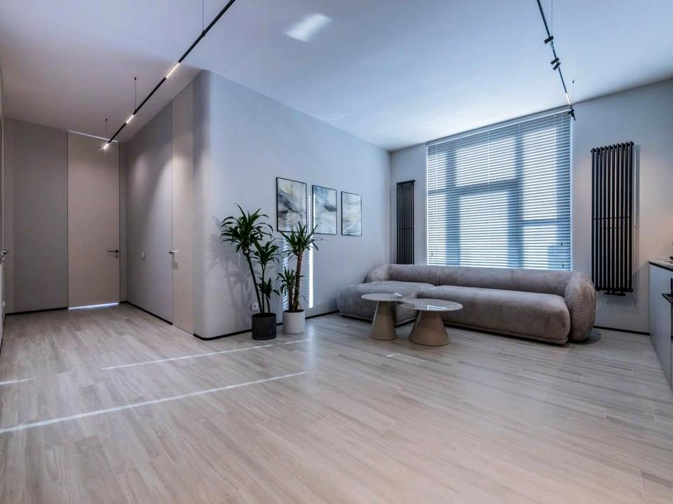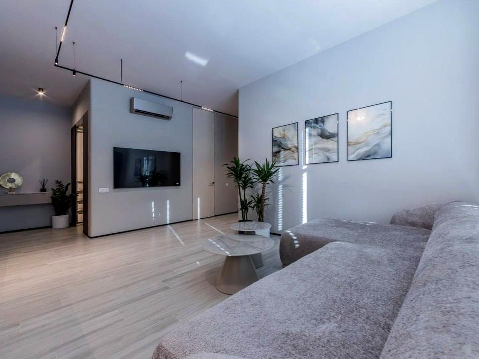 - Простора кухня-вітальня з сучасним обладнанням, відкритим плануванням та обідньою зоною.