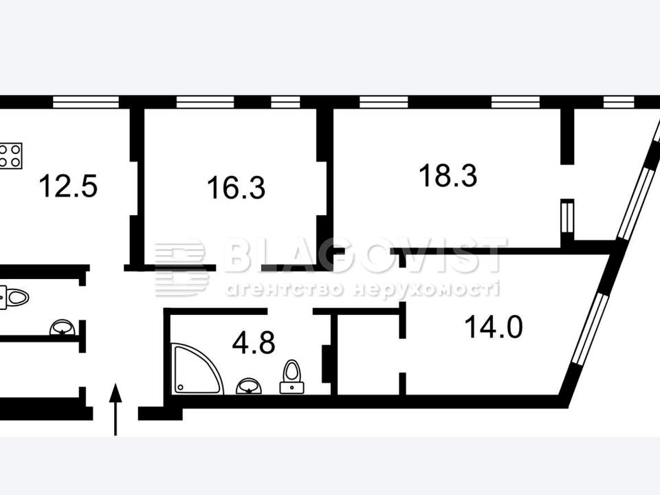 Простора кухня-студія, три окремі кімнати, гардеробна, госп.кімната, два сан.вузла.