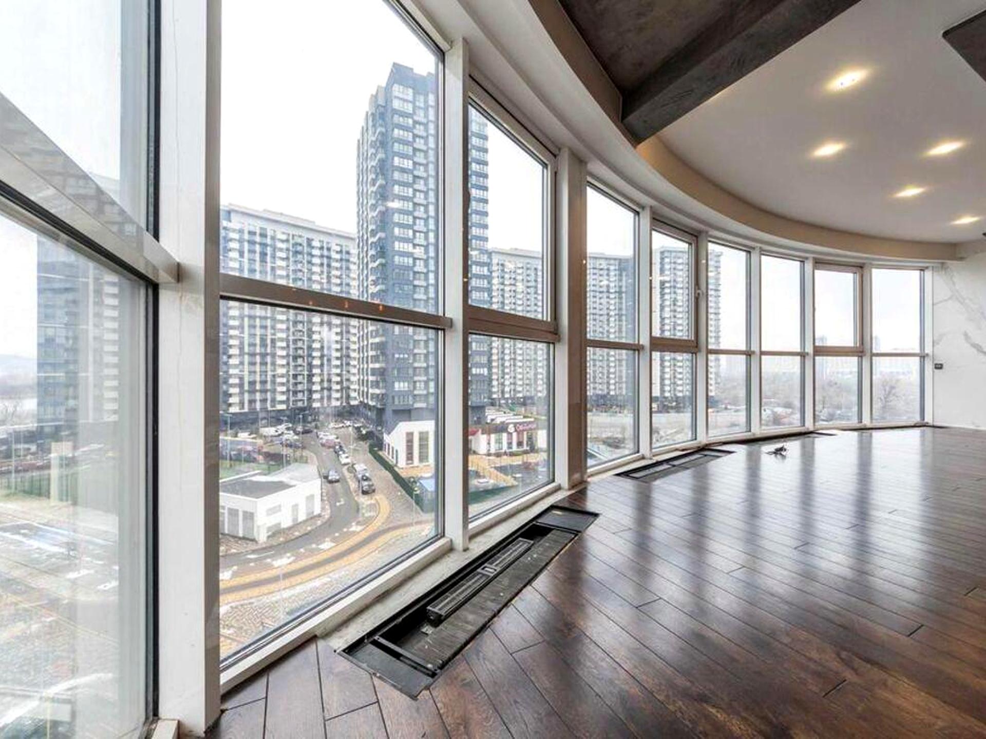 Велика кухня-вітальня з панорамними вікнами — ранки з видом на місто та вечори у світлому просторі стануть новою звичкою.