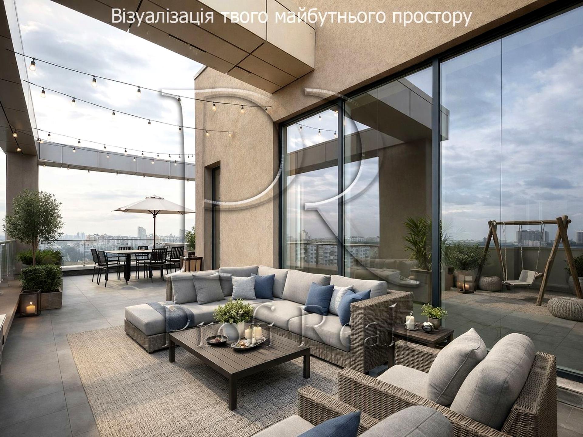 Тераса — ключова перевага цього пентхаусу, місце для вечірніх розмов, ранкової кави або медитації.