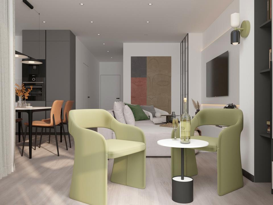 • Житлові кімнати: 21,5 м² та 17,7 м²