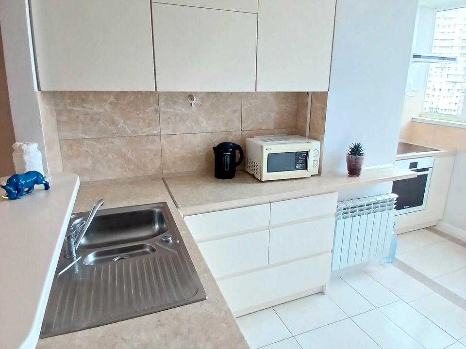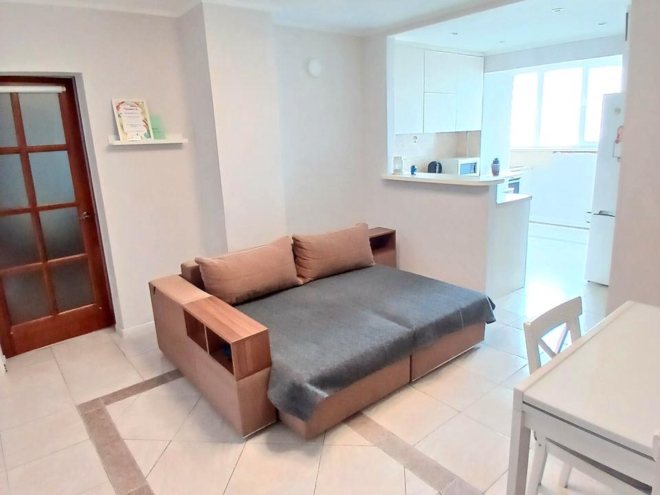 Продаж 3 кімнатної квартири з капітальним ремонтом, вул. Дністерська (Двінська) 19. Квартира з якісним ремонтом з трьома окремими спальнями та кухнею студією 18.9м². Площа квартири 83.3/45.8/18.9м². При вході в квартиру розміщена велика гардеробна де розміщена також пральна машинка та бойлер, далі проходимо в в кухню стідію 18.9м де розміщений гармонійно диван стіл обідній та великий плазмовий телевізор, кухня з барною стойкою та зручною робочою поверхнею, вбудована варильна поверхня та духовка, посудомийка, кондиціонер, на підлозі плитка є підігрів підлоги в зоні кухні. Далі окрема хазяйська спальня кімната з власним виходом на простору засклену лоджію, в кімнаті велике ліжко з ортопедичним матрасом, шафа, крісло, робочий стіл, дитяче ліжко, частина меблів в спальні кімнаті Італійські дуже якісні, є кондиціонер, кімната пофарбована в приємний колір. Окремо розташовані ще дві дитячі кімнати якіх є ліжка та також в кожній з них є кондиціонер. В кімнатах на підлозі дубова паркетна дошка. Великий просторий сумісний санвузол з ваною. Квартира в живу виглядає краще ніж на фото. Приємним вид з вікна. Квартира дуже тепла, дуже товсті стіни 70 см, будинок цегляний. Квартира знаходиться на 16/17 поверхового цегляного будинку, на поверсі всього 4 квартири. Квартира для тих хто хоче вже хоче заїхати і жити, квартира в якій приємно знаходитись.