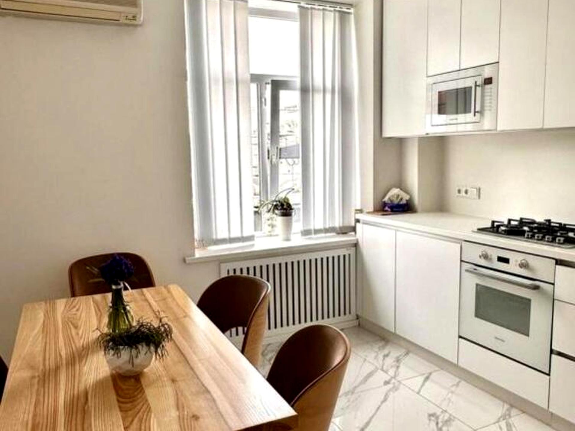 В квартирі 3 кімнати, висота стелі 3.2 метра, Технологія будівництва - Цегляна, Тип будинку - Сталінка. Вид з вікон на місто. Планування кімнат Роздільне. Є газ, кухонна плита газова. Гаряча вода - централізована. Опалення центральне. Суміщений санвузол, Туалет/душ. Немає балкона. У квартирі є Телевізор, Шафа, Ліжко, Камін, Кондиціонер, Пральна машина, Душова кабіна, Холодильник. Будинок побудований в 1940 році. Загальний стан квартири - З ремонтом. Поруч є зупинки, розважальні заклади, дитсадок, школа, супермаркет. Інтернет оптоволоконний. Працює без світла - вода, газ, опалення. Комісія за послуги 5 %