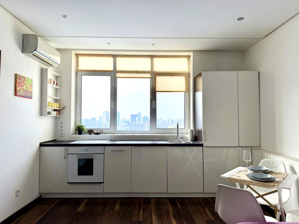 • кухня-студія з великим вікном, багато природного світла
