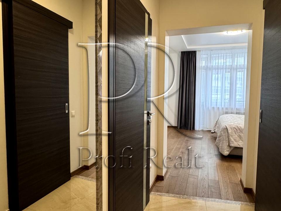 Раціональне планування: дві окремі спальні (23 м² та 16 м²), простора вітальня 23 м², велика кухня 15 м², два санвузли, дві гардеробні, три балкони, господарський блок і місткий передпокій з вбудованою шафою.