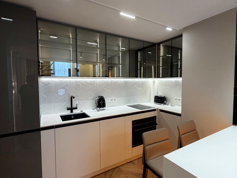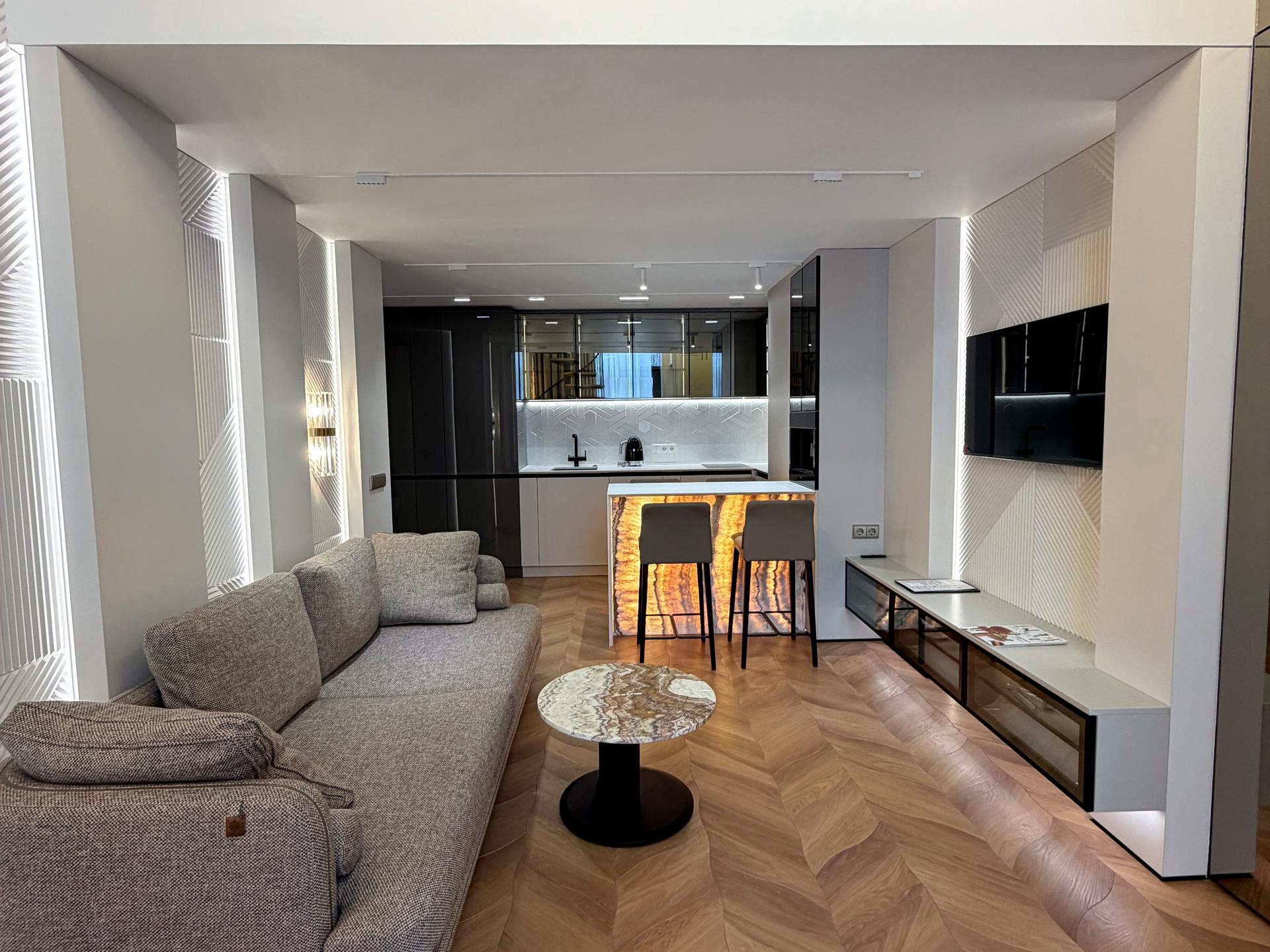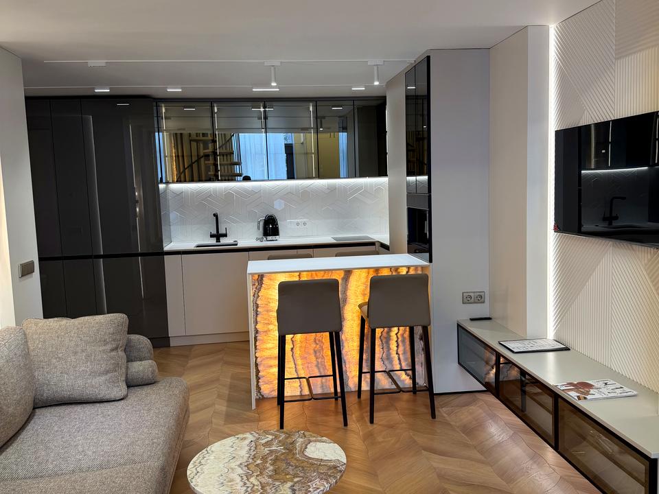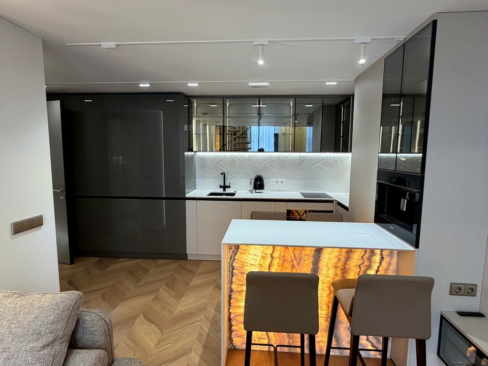 ЖК Standarb One, метро Виставковий центр - 1 хвилина, в продажу найкраща 2- х поверхова квартира - з дизайнерським ремонтом , меблями та технікою . На 1 поверсі - велика кухня вітальня , вся побутова техніка - SMEG : посудомийна машина, варильна поверхня, витяжка, каво машина, духова шафа, тостер і чайник. Мийка Blanco, подрібнювач побутових відходів, система водопідготовки, фільтр зворотного осмосу, водонагрівач, прально- сушильна машина. Підігрів стін і підлоги , « розумний будинок» з керуванням через додаток, клімат- контроль (кондиціонер Daikin із припливною вентиляцією ), телевізор Samsung. Покриття підлоги ковролін і паркет. Підлогові конвектори. Диван , шафи в коридорі, ванна кімната та гостьовий сан вузол. На 2 поверсі - зона відпочинку , яка облаштована шикарними мʼякими меблями, 2- х спальне ліжко , робочий куточок, велика гардеробна та сан вузол . Квартира має два виходи - в лоббі ЖК та у внутрішній дворик , який під охороною , є придомова территория. Поряд - парк, метро, Новус, Пузата Хата , Добробут, кафе. По документах - один власник, знаходиться в Україні. А головне, що в квартирі постійно - є опалення, світло та вода, бо встановлено джерело безперебійного живлення. В квартирі ніхто не проживав , ви будете першими.