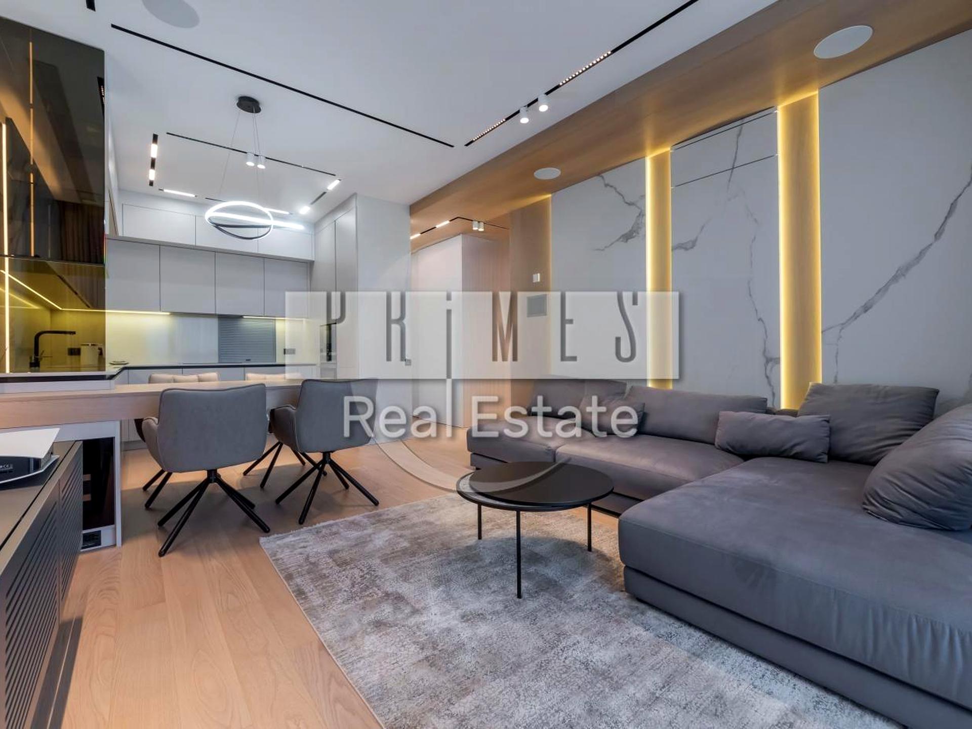 Меблі зроблені на замовлення, а по всій квартирі вбудована стереосистема Bowers&Wilkins, яка буде працювати в парі з професійним лазерним проектором 4К з висувним екраном і повною інтеграцією в розумний будинок;