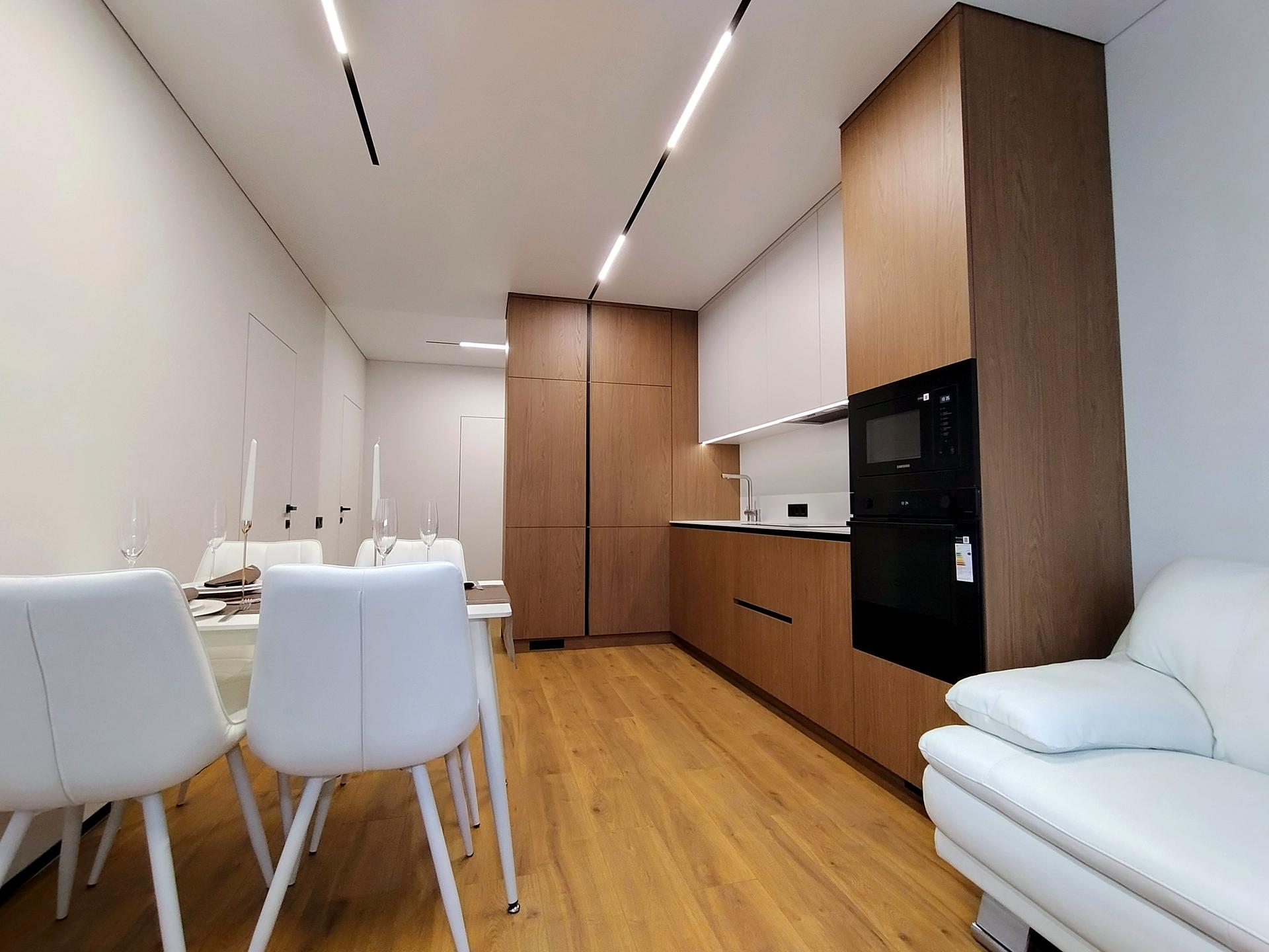Вишукана двокімнатна (дві кімнати і кухня-вітальня) квартира в одному з найпопулярніших ЖК Києва - Варшавський 2. Чудова інфраструктура з найрізноманітнішими кавя'рнями, кафе, ресторанами, магазинами, клініками, спортклубами, ТРЦ Ретровіль! Новий, дуже якісний ремонт (аналогів у продажу в Варшавському навряд чи зустрінете). Стіни - декоративна штукатурка. Сигналізація AJAX/ Повністю укомплектована індивідуальними меблями (вт.ч дві гардеробні). Побутова техніка - Самсунг (кондиціонери, телевізор 65", холодильник, посудомийка, пральна і сушильна машинки, Духова шафа, мікрохвильовка, індукційна варильна поверхня). Ціна квартири 160000 + нотаріальне оформлення (від 4000)
