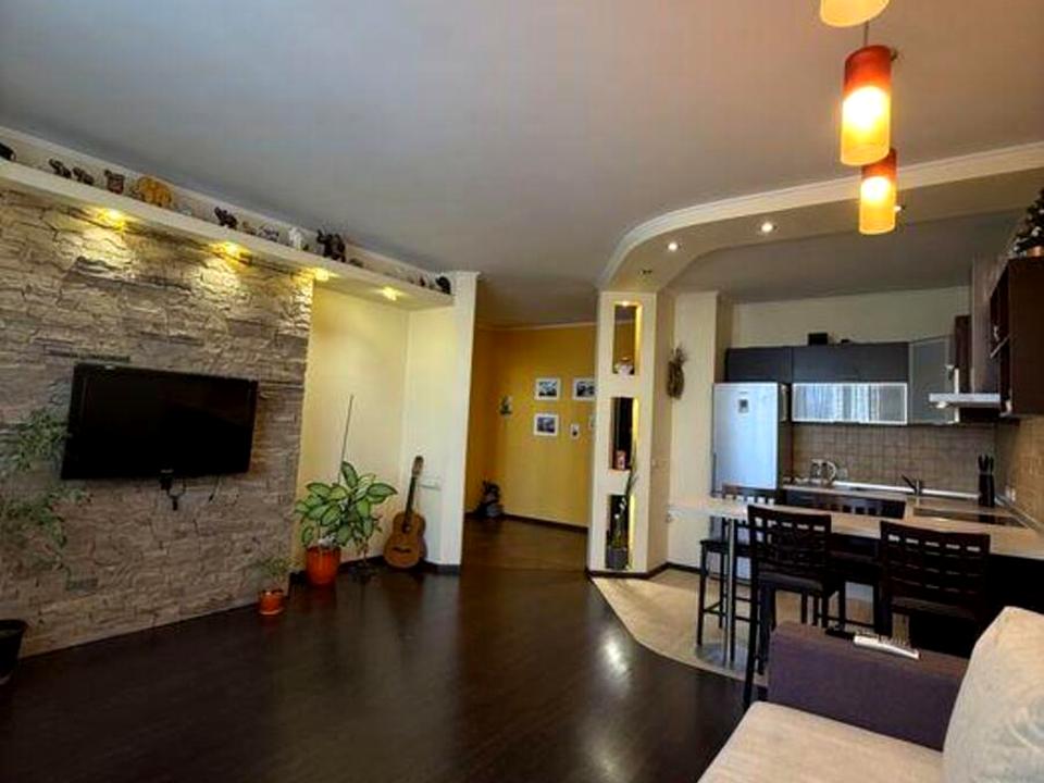 Квартира з ремонтом, повністю укомплектована меблями та технікою, готова до заселення або здачі в оренду без додаткових витрат. Велика кухня 25 м² дозволяє зручно зонувати простір під кухню-вітальню.