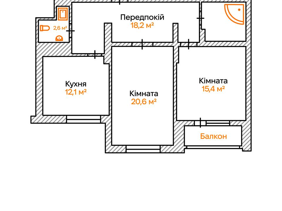 • Площа: 77.5 м²