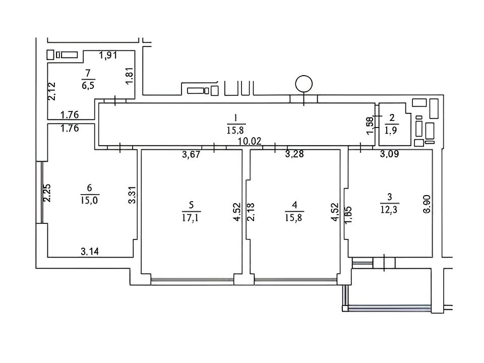 Квартира після будівельників: підлога - лазерна стяжка, стіни - штукатурка, стеля - без оздоблення.