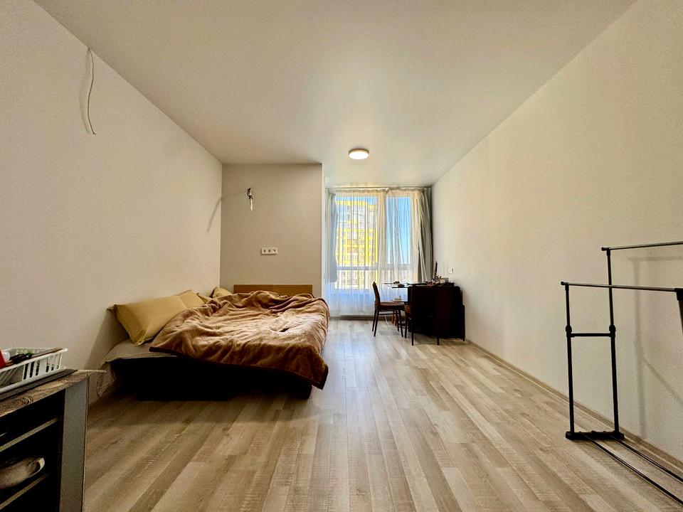 Квартира розташована на 18-му поверсі 25-поверхового будинку. Загальна площа — 32 м². Виконаний якісний ремонт, встановлені натяжні стелі. Простір світлий та затишний. Залишилось облаштувати кухню на власний смак — чудова можливість створити інтер’єр саме під себе.