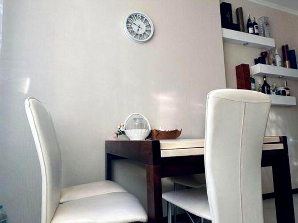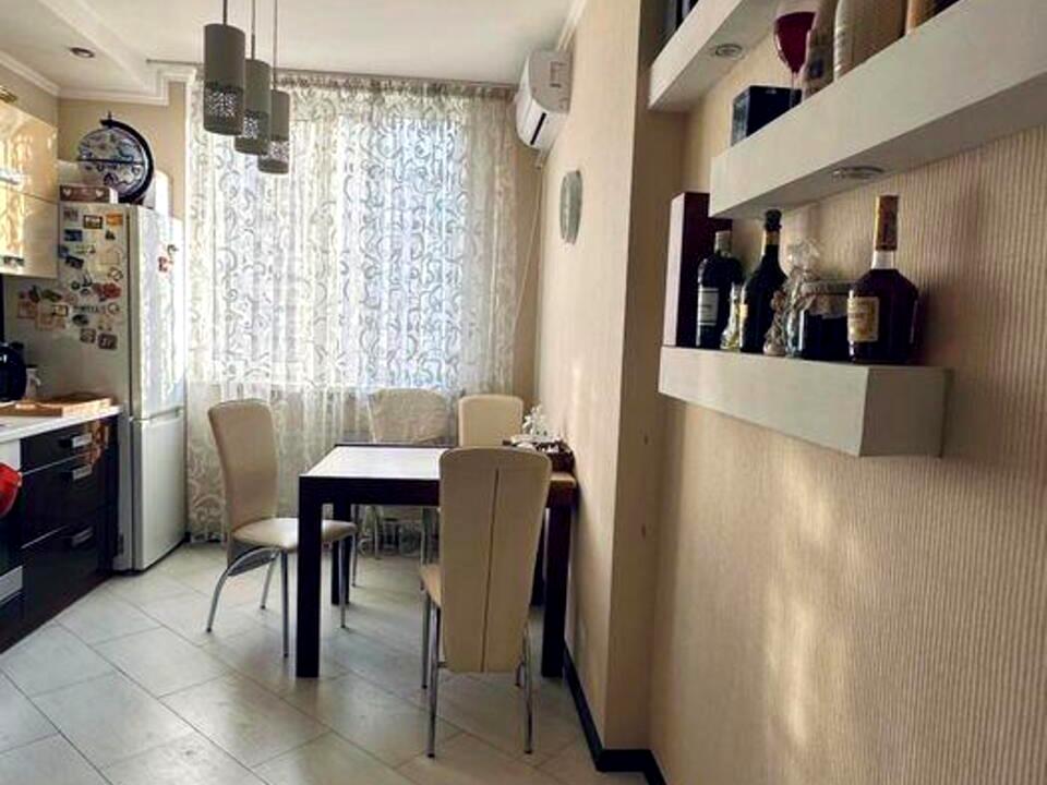 Окрема, функціональна та дуже світла за рахунок великого вікна. Вбудована кухня в поєднанні темного низу та світлого верху виглядає стильно й сучасно. Є обідня зона на 4 особи, кондиціонер, вбудована техніка. Простір продуманий до дрібниць — комфортно як для життя, так і для прийому гостей.