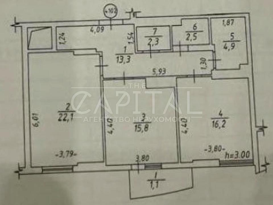 Загальна площа 78,2 кв. м. Житлова 38,3 ,кухня 15.8 м. Висота стелі 3,03 м.