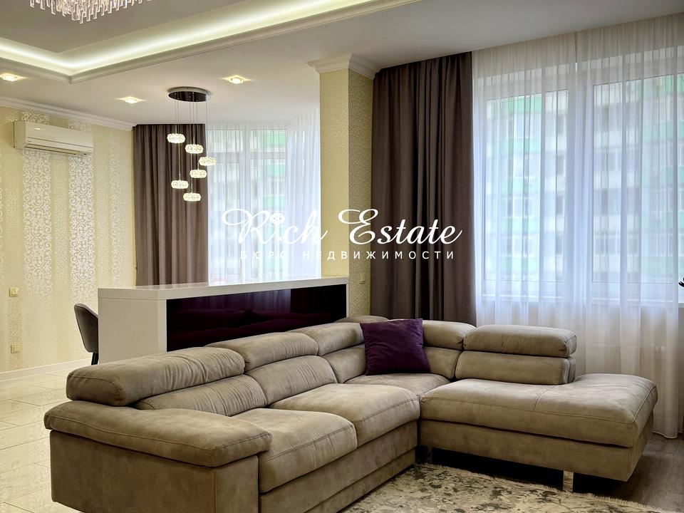 В квартирі 3 кімнати, висота стелі 3 метра, Технологія будівництва - Монолітно-каркасна, Тип будинку - Спец. проект. Немає газу, кухонна плита електрична. У квартирі є Телевізор, Кабельне ТБ, Підігрів підлоги, Кондиціонер, Пральна машина, Душова кабіна, Джакузі, Холодильник, Посудомийна машина, Сигналізація. Будинок побудований в 2015 році. Загальний стан квартири - З ремонтом. Гаряча вода - централізована. Кількість санвузлів: 2. Інтернет оптоволоконний. Працює без світла - вода, опалення, інтернет. Тип кухні - кухня-студія. Кількість спален: 2. Без комісії