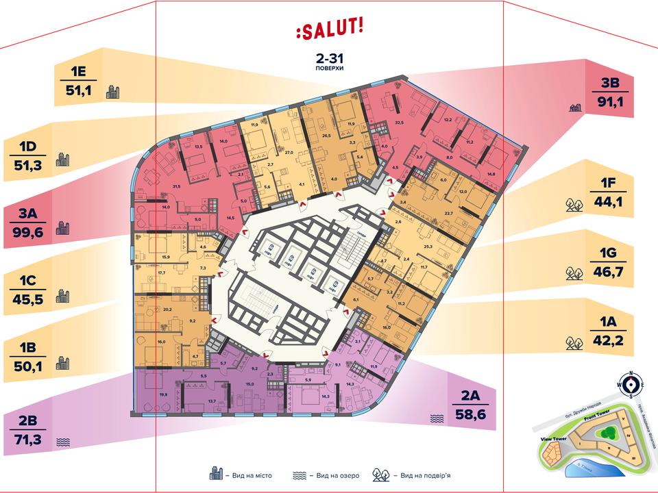 панорамні краєвиди на місто з вікон комплексу