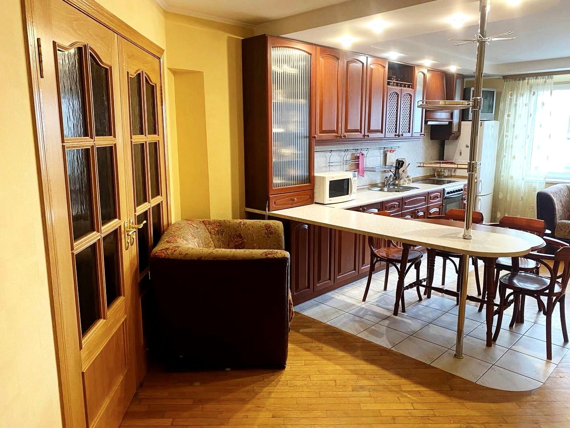 Святошинська площа 1. Продам двокімнатну квартиру вдало переплановану в трикімнатну. 70/27,3/17,3 м2. Великий хол 12м2, великий санвузол 10м2, кухня- вітальня 17м2 і дві окремі спальні. Велика засклена лоджія. Квартира з ремонтом, меблями та побутовою технікою. 21-й поверх. Квартира світла та простора, з вікон квартири відкривається гарний панорамний вид на місто. В під"їзді - консьєрж, 3 ліфти, у дворі - огороджений сучасний дитячий майданчик. Поруч метро Житомирська 400 метрів, Святошин. Магазини та ТЦ Xit Mall, Нова Пошта. Найкращій район Києва для комфортного проживання. Ціна: 90000$