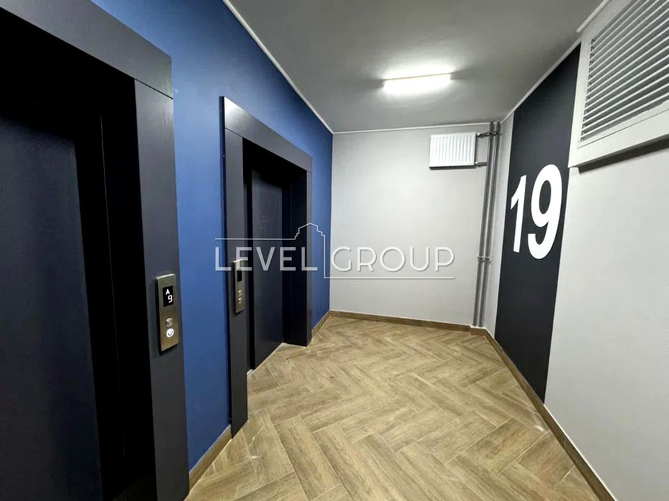 Світла та простора квартира на 19 поверсі з продуманим плануванням і великою кухнею.