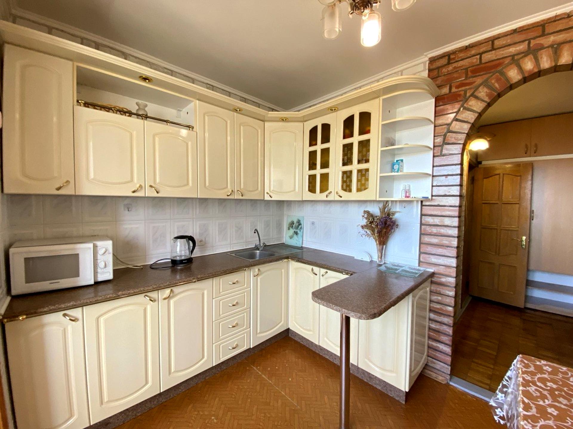 В квартирі 2 кімнати, висота стелі 2.6 метра, Технологія будівництва - Утеплена панель. Немає газу, кухонна плита електрична. Немає балкона. У квартирі є Телевізор, Кондиціонер, Пральна машина, Ванна, Холодильник, Мікрохвильовка. Будинок побудований в 1983 році. Загальний стан квартири - З ремонтом. Гаряча вода - електричний бойлер. Кількість санвузлів: 1. Інтернет бездротовий. Працює без світла - вода, інтернет. Тип кухні - окрема кухня. Кількість спален: 1. Немає підземного паркінгу, доступного як укриття. Інфраструктура території: дитячий майданчик, спортивний майданчик. Комісія за послуги 3 %
