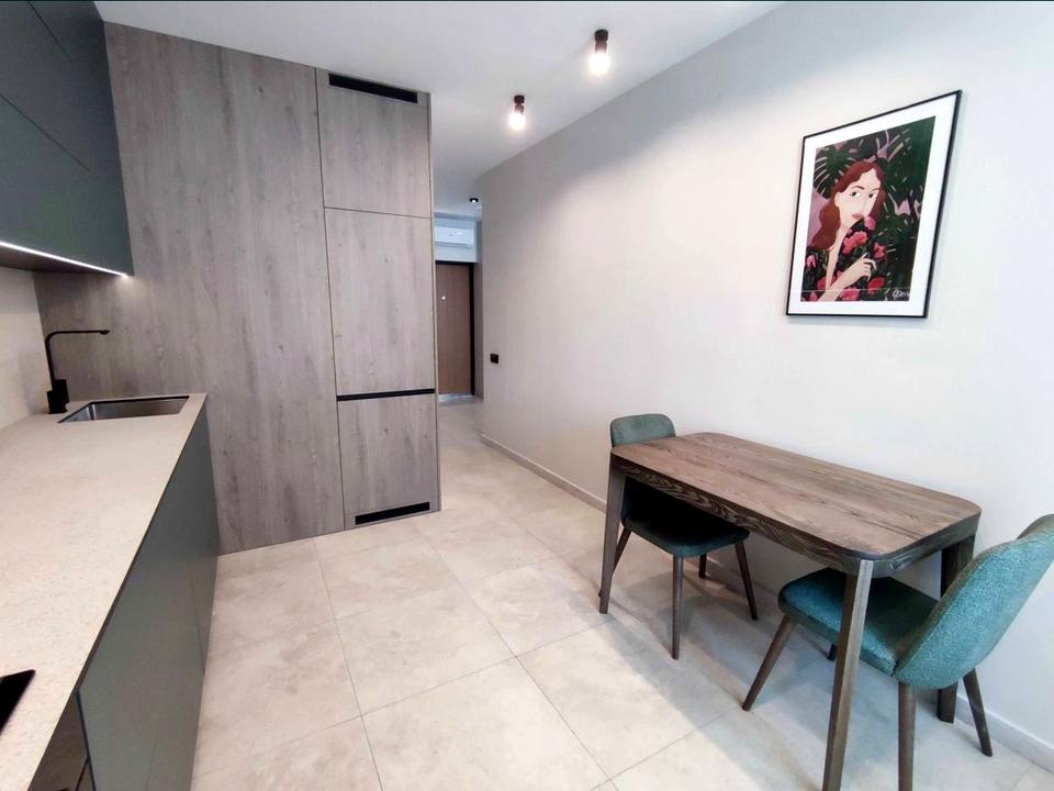 В квартирі 1 кімната, висота стелі 2.7 метра, Технологія будівництва - Монолітно-каркасна, Тип будинку - Спец. проект. Немає газу, кухонна плита електрична. Є балкон. У квартирі є Підігрів підлоги, Кондиціонер, Пральна машина, Ванна, Посудомийна машина. Будинок побудований в 2021 році. Загальний стан квартири - З ремонтом. Безбар'єрність: пандус. Гаряча вода - електричний бойлер. Кількість санвузлів: 1. Інтернет оптоволоконний. Власник погоджується продати по програмі єОселя. Працює без світла - вода, опалення, інтернет, ліфт. Власник погоджується продати по програмі єВідновлення. Тип кухні - окрема кухня. Кількість спален: 1. Є підземний паркінг, доступний як укриття. Інфраструктура території: дитячий майданчик, виокремлена зона для вигулу тварин. Комісія за послуги 5 %