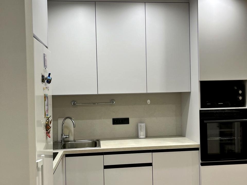Квартира знаходиться на третьому поверсі. Загальна площа 43 кв.м. Вдале плануванння:велика кухня -вітальня та спальня.Санвузол суміжний,якісна сантехніка. Підігрів підлоги у санвузлі. Вбудована кухня з побутовою технікою .Ліжко з натурального дерева.. 2 великі шафи: в спальні та в коридорі.