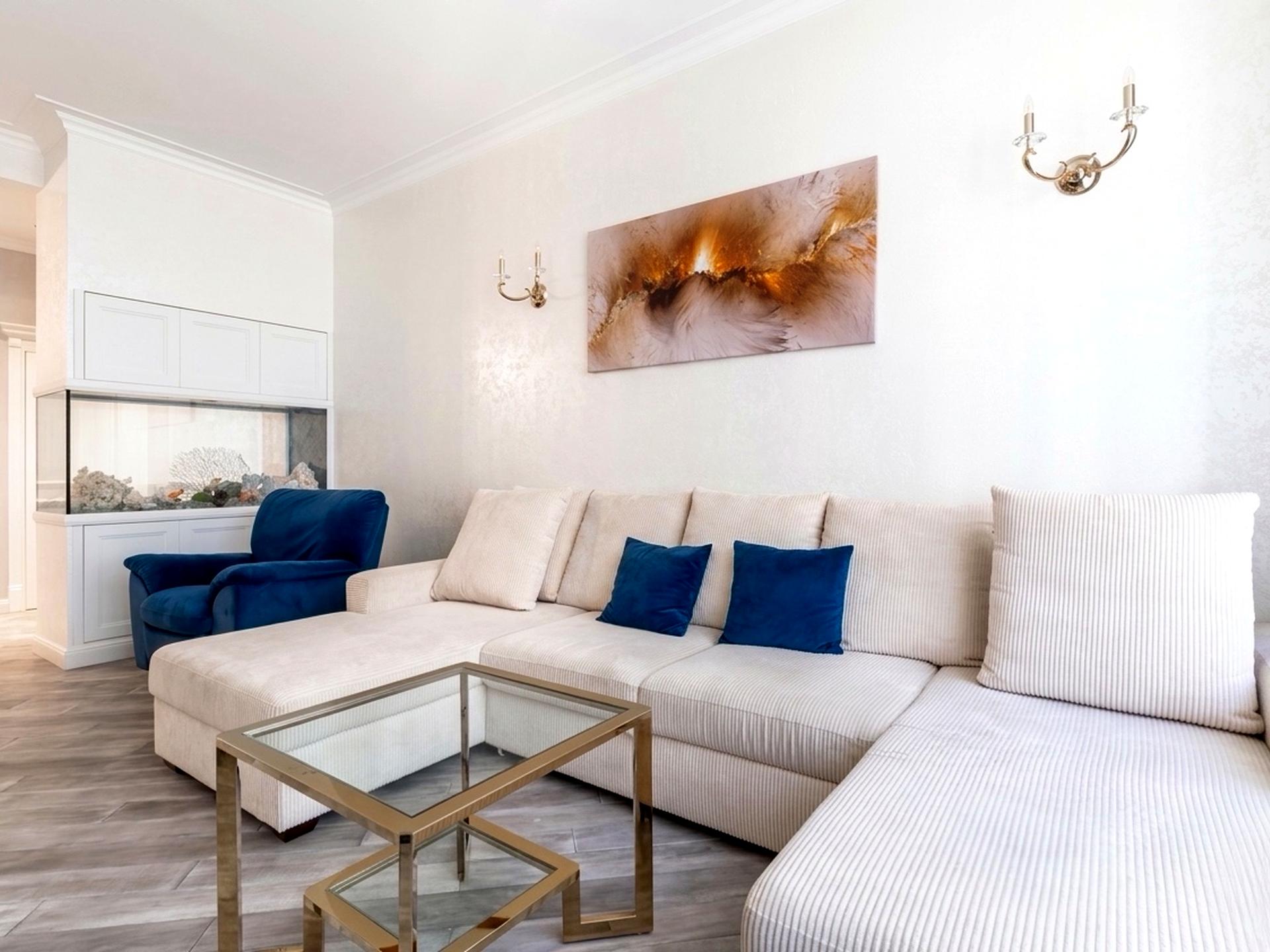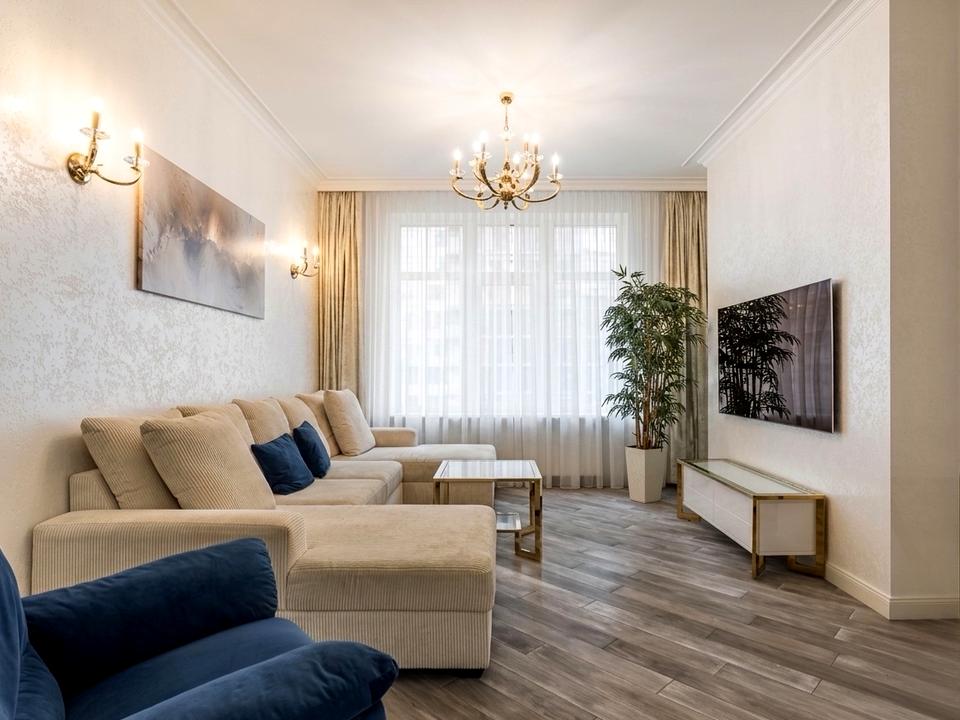 Квартира з якісним дизайнерським ремонтом повністю мебльована та обладнана всією необхідною технікою.
