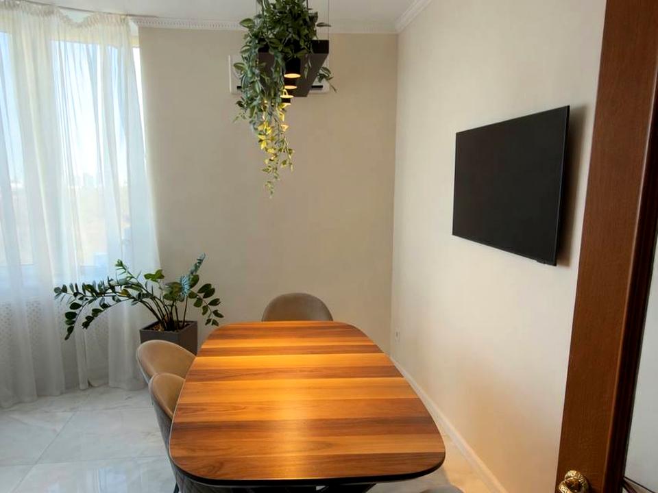 Зроблений якісний ремонт з використанням дорогих матеріалів. Встановлена нова гарна кухня та функціональні меблі.Квартира з чудовим,правильним та продуманим плануванням. У вітальні — дорога паркетна дошка