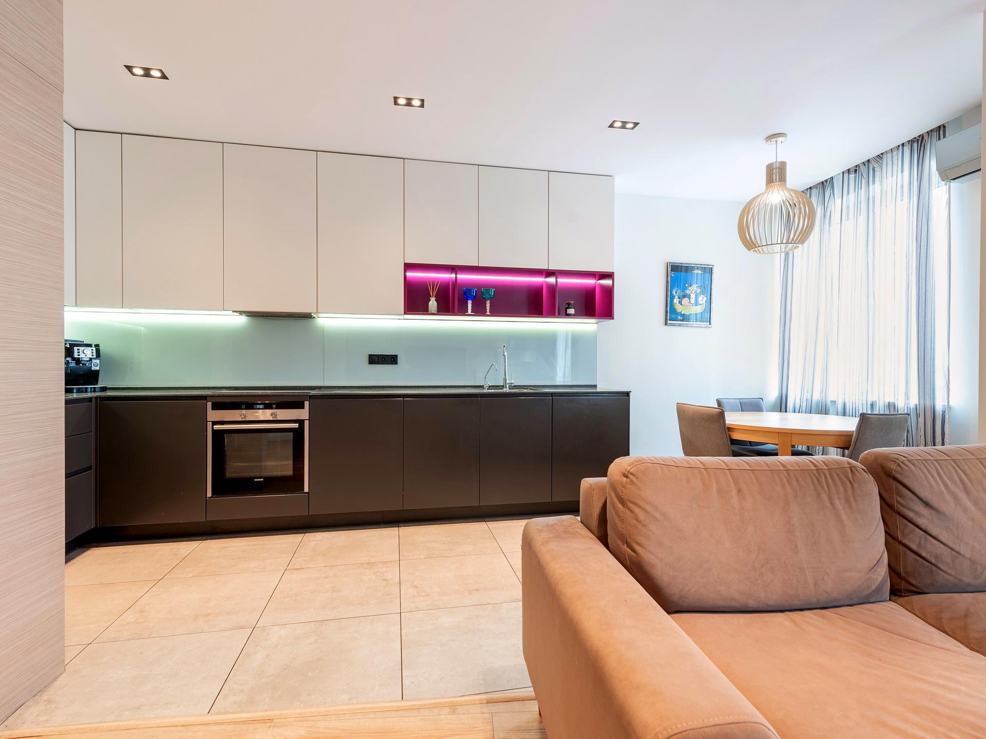Квартира з якісним, стильним ремонтом, облаштована меблями та сучасною технікою.