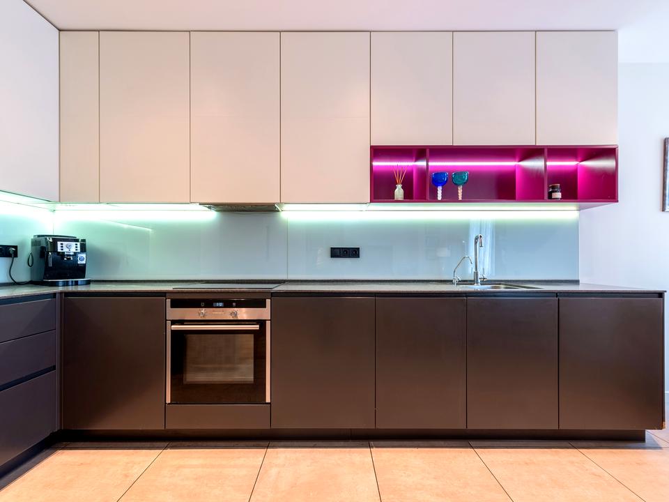 - велику презентабельну кухню-вітальню 34 метри, простір якої вдало розділений на зони кухні та відпочинку;