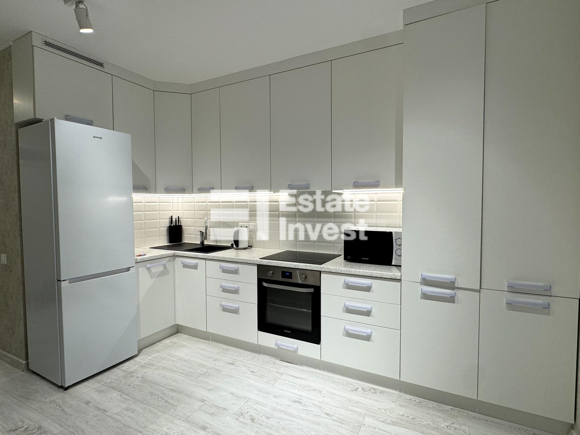 Квартира виконана у світлих сучасних тонах та має стильний дизайнерський ремонт. Кухню та спальну зону об’єднано для створення максимально функціонального простору. Встановлено нові меблі та сучасну техніку, використано якісні матеріали оздоблення — ідеальний варіант “заходь і живи”, без додаткових вкладень або під здачу в оренду. В будинку є генератори на ліфти та воду.