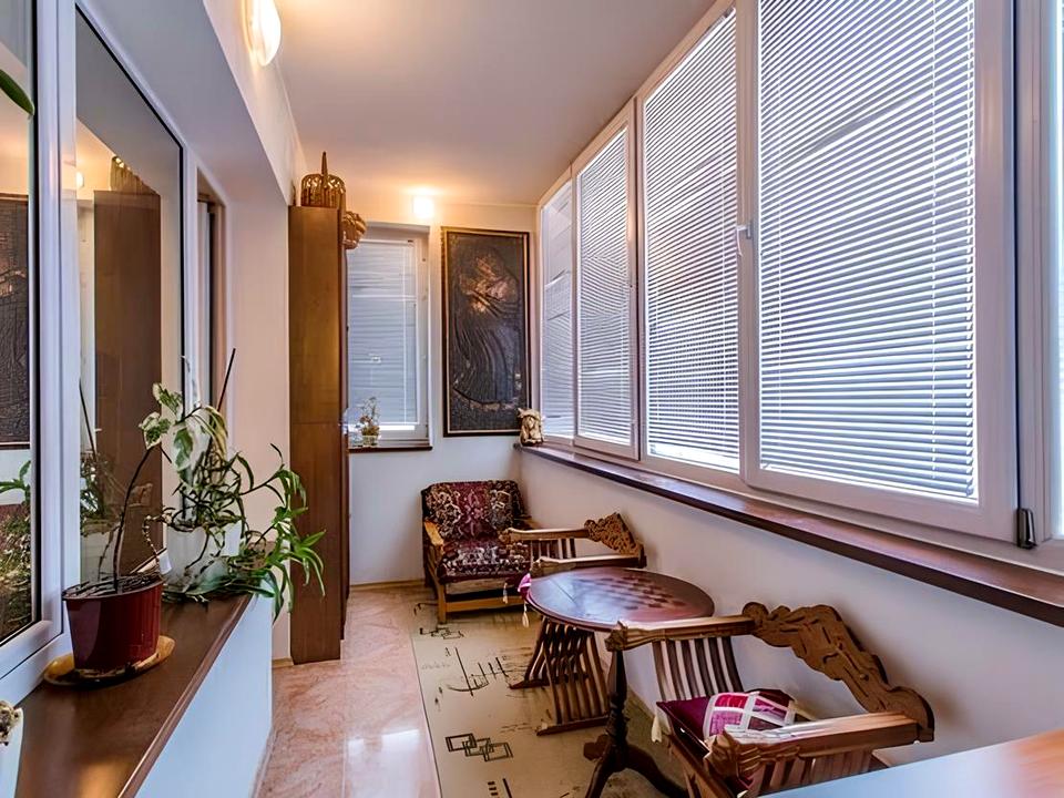 Велика зручна кухня, дві окремі спальні, більярдна, кабінет, вітальня, сауна, два санвузли, два підсобні приміщення (прасувальна-гардеробна, комора), два балкони (відкритий та засклений та утеплений), вікна м/п, лічильники (вода, електрика).