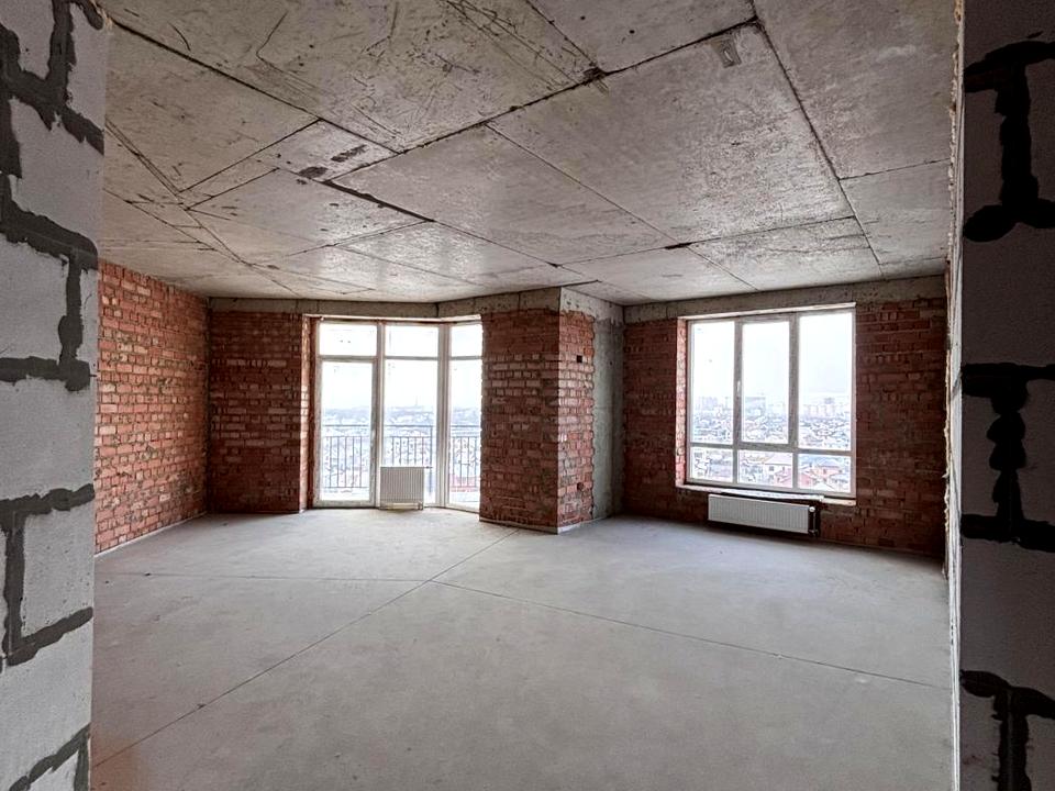 Дом кирпичный. Квартира расположена на 9 этаже. Распланирована на 2 раздельные спальни и большую кухню-гостиную. Есть 2 балкона. С кухни-гостиной и одной из спален есть выход на открытый балкон. Окна панорамные. Санузел раздельный. При входе в квартиру просторная прихожая.