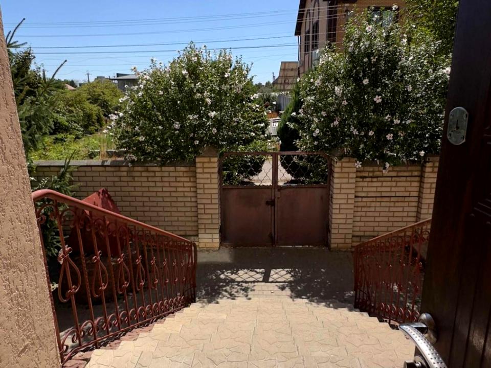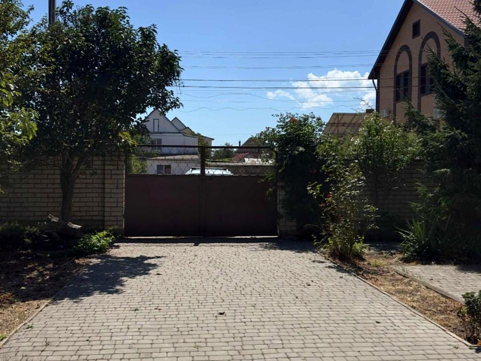 Территория 10 соток огорожена еврозабором между соседями и из камня по фасаду. Насажены хвойный и плодовые деревья, есть беседка. Во дворе есть место для 4-х машин. Установлено видеонаблюдение. Колодец вместимостью около 5 м³ для технических нужд