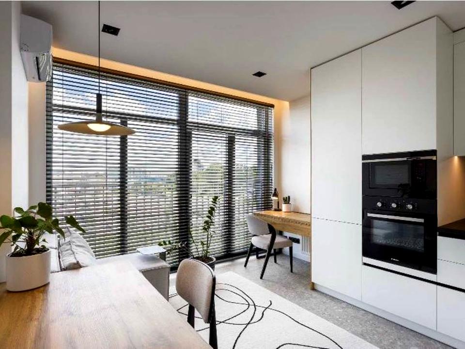вбудована духова шафа та мікрохвильова, NoFrost холодильник, електрочайник, кондиціонер, пральна + сушильна машини, відеодомофон, пилосос, фільтр. система,