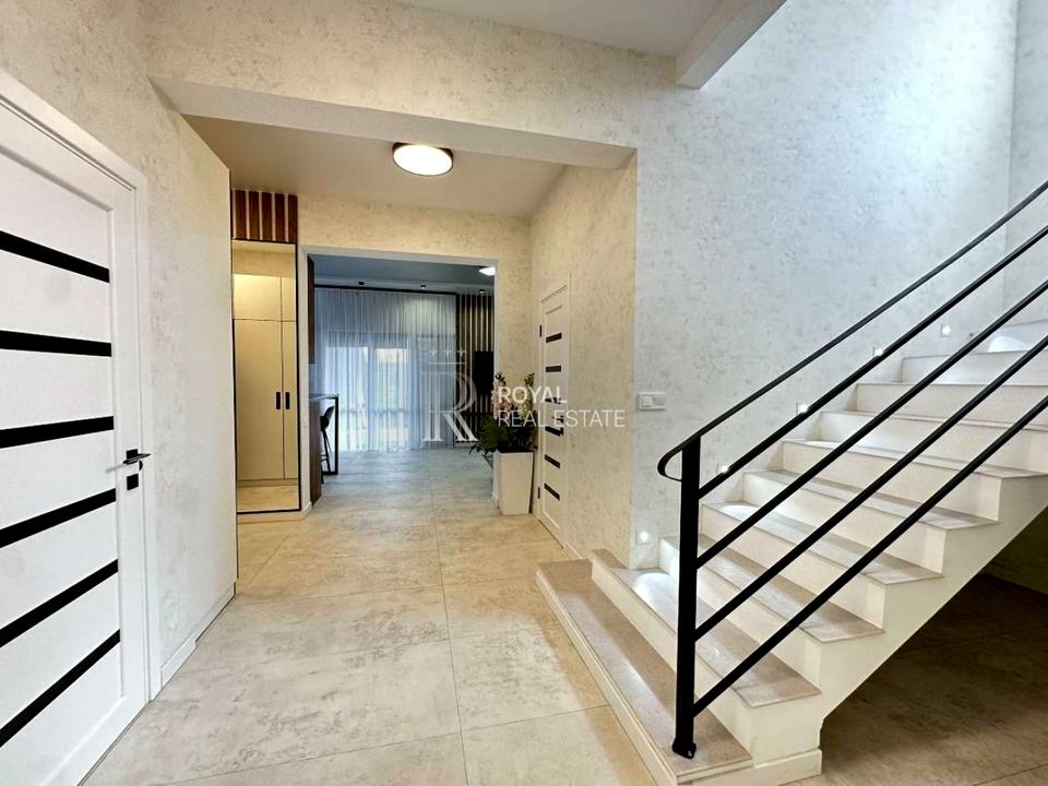 В будинку на другому поверсі 3 кімнати, 2 санвузли, лоджія під склом з теплою підлогою, гардероб. На першому поверсі простора кухня-вітальня з каміном та виходом на терасу, санвузол, електрична сауна з кімнатою відпочинку, гардероб, техприміщення. На терасі BBQ зона з підведеною теплою водою.