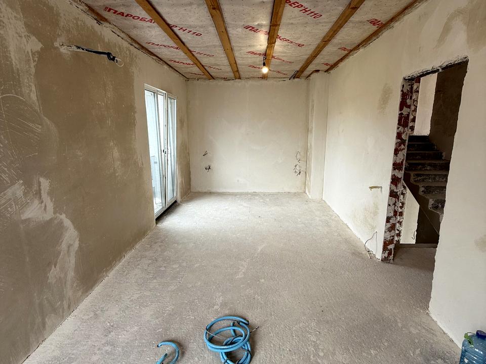 Ремонт за дизайн проєктом. Зроблений 1-й етап чорнові роботи. Є можливість проведення кінцевих ремонтних робіт при покупці будинку до кінцевого етапу з корегуванням на смак покупця.