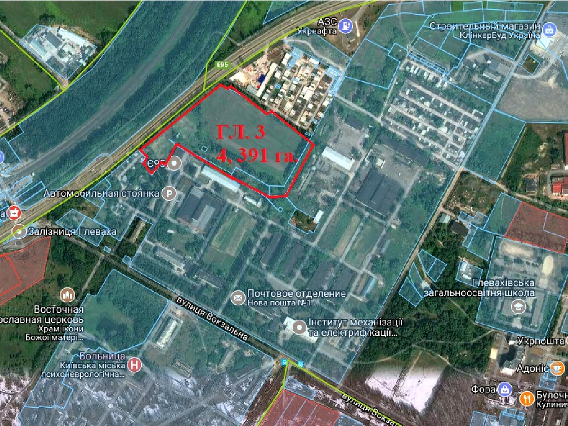 Пропонуємо до продажу три земельні ділянки (одним масивом), загальною площею 4,391 га. на фасаді Одеської траси, в межах смт. Глеваха.