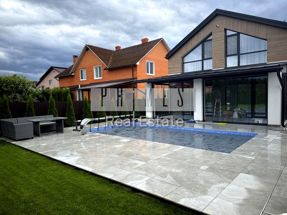 Новий будинок з ремонтом, розташований у с. Глеваха, що оточене лісом та має озеро з пляжем.