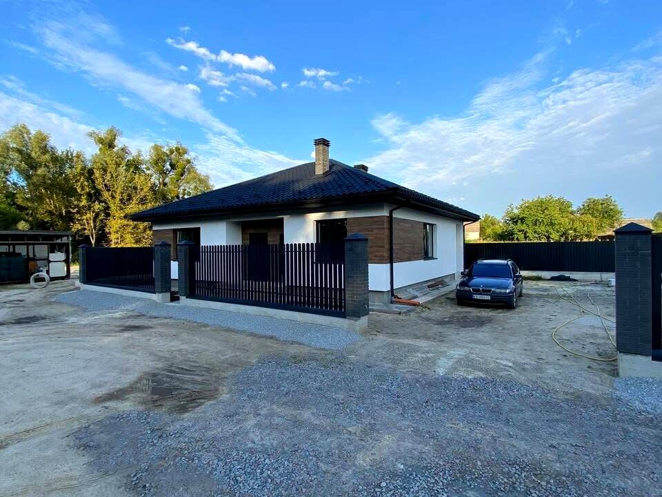 Продам котедж із готовим гостьовим будинком, на 8 сотках землі в тихому і затишному місці села Гнідин, продаж четвертого будинку на закритій, не проїздна вулиця. В ціну входить повністю закінчені роботи по фасаду ( мінеральна вата 100 мм, підшив софіт, водостічна система ), відмостка, сходи, паркан по периметру, кільця каналізації 12 кубів, свердловина, підключене світло 20 кВт. Будинок основний 107 м2. Тераса 20 м2, Горище 50 м2. В середині будинку велика кухня- вітальня, 3 спальні кімнати, 2 санвузли, котельня. Стіни поштукатурені, утеплення перекриття 200 мм мінеральною ватою. Зроблене водопостачання, розведена електрика. Гостьовий будинок вже придатний для постійного проживання. Ціна 145000 у. о. Найбільший вибір будинків і ділянок. Номер оголошення №1062. Дивіться інші оголошення автора. Більше об’єктів нерухомості на нашому сайті