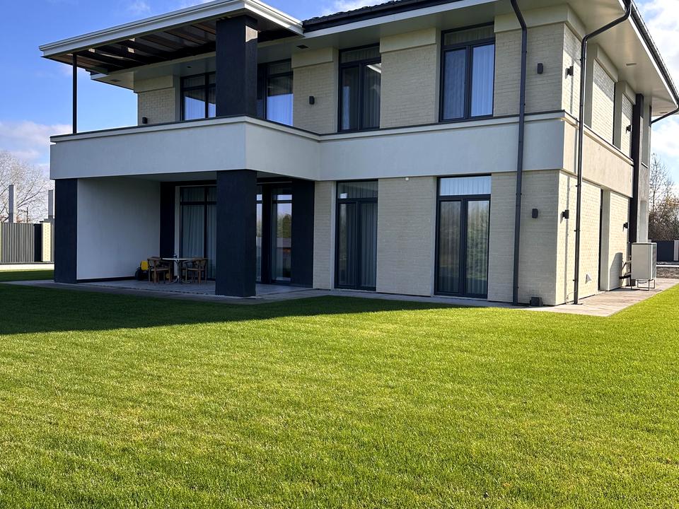 Новий будинок з сучасним ремонтом, меблями та технікою. Виконаний з червоної цегли. Висота стелі 3 метри. Дах метало черепиця. Підшива даху а люкобонд. Опалення електро, газ, тепло насос. Тепла підлога.
