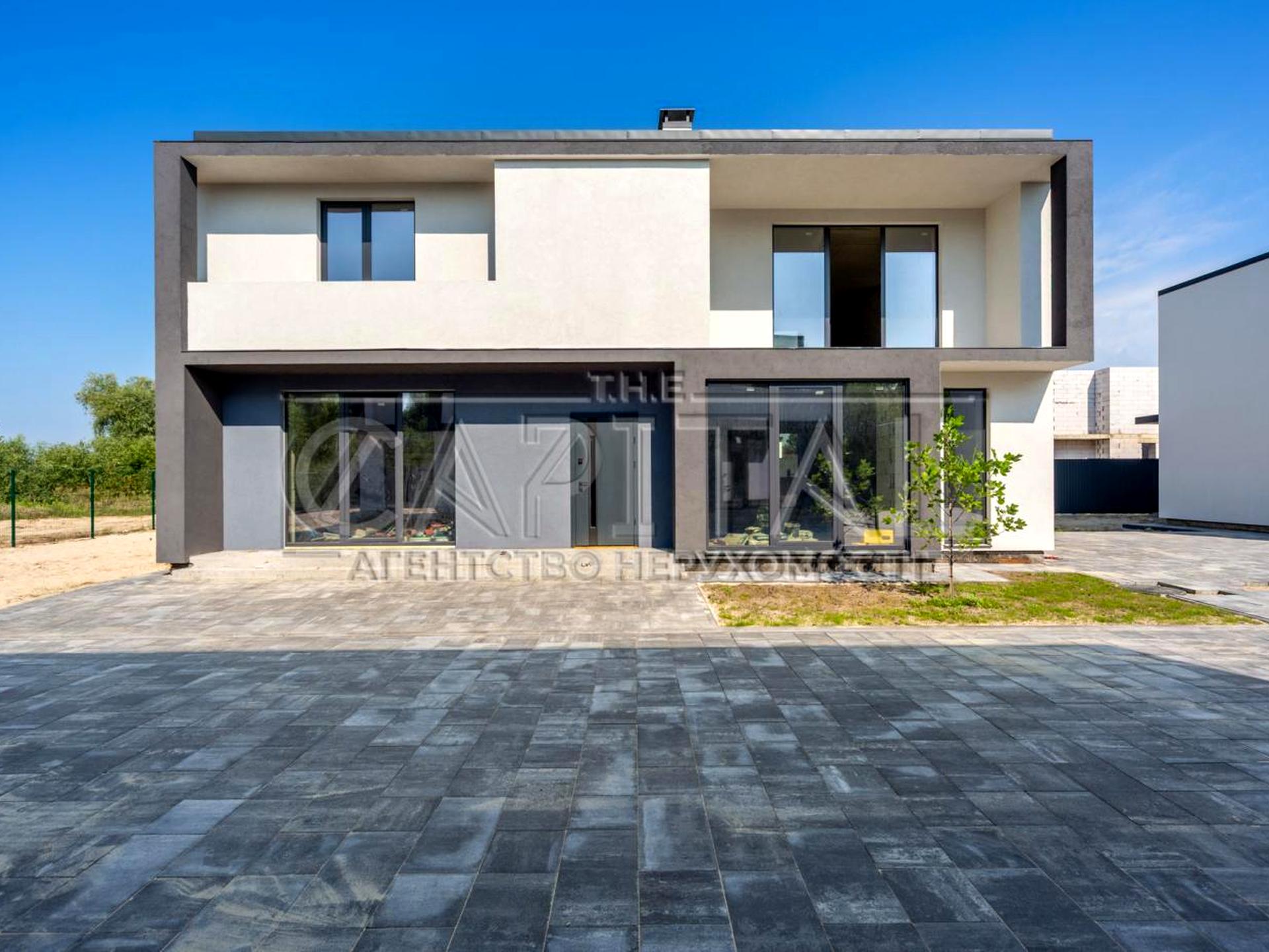 У вартість входить 140 м2 теплої коробки з фасадом, 3 сотки землі з мінімальним ландшафтом, комунікації та металевий паркан.
