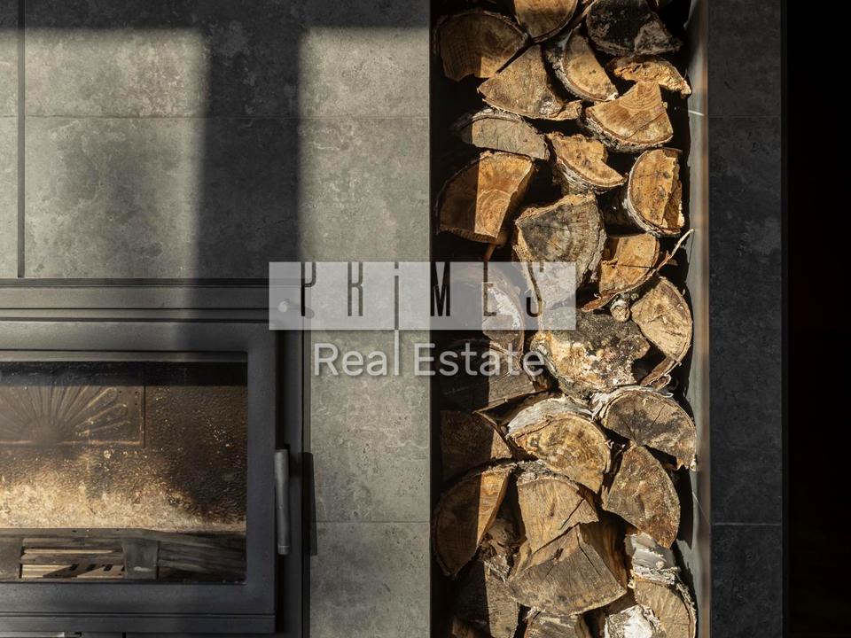 -Простора кухня-вітальня, камін.