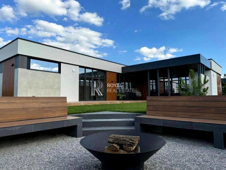 Будинок в один поверх є енергозберігаючим та герметичним, раціональне планування: передпокій, котельня, кухня-вітальня, спальня з санвузлом та гардеробною, ще дві спальні та санвузол. З вітальні вихід на терасу з зоною барбекю.