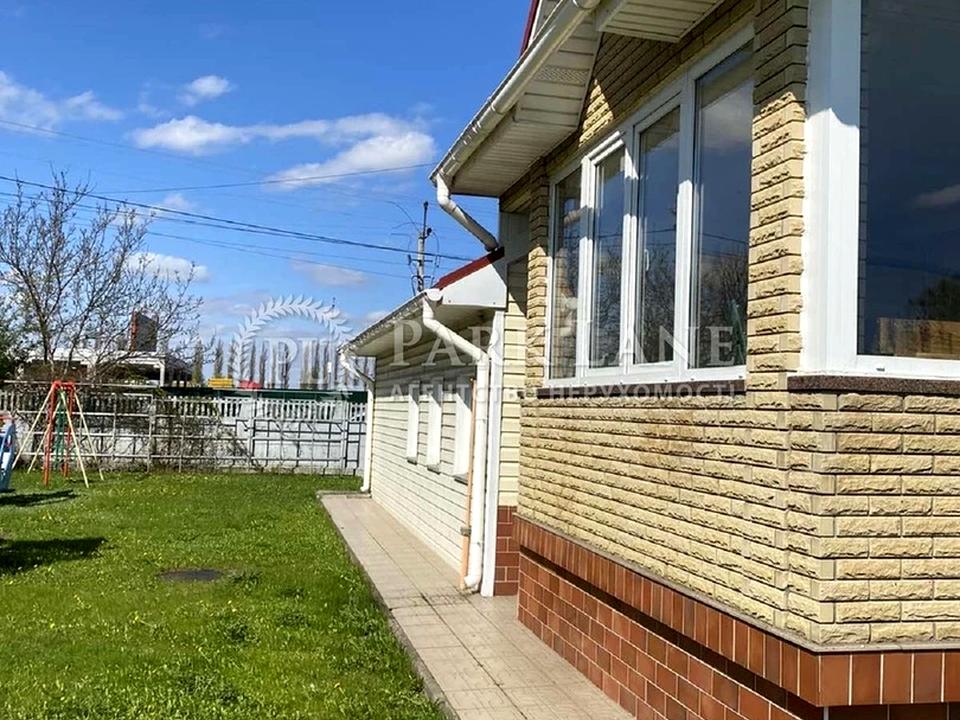 Пропоную затишний будинок по бориспільскій трасі. Можна під комерційну та житлову нерухомість. На першому поверсі розташована простора вітальня з виходом на терасу, кухня мебльована з посудомийною машиною та санвузол з душовою кабіною. На другому поверсі розташовані три окремі спальні з ванною кімнатою. Два телевізора, інтернет. На цокольному поверсі розташовані 2 кімнати відпочинку та велика шафа-купе. Два газових котли. В будинку також є гараж, доглянутий молодий сад, дитячий майданчик, поруч, АТБ, Макдональдс, зупинка транспорту.Будинок вільний.