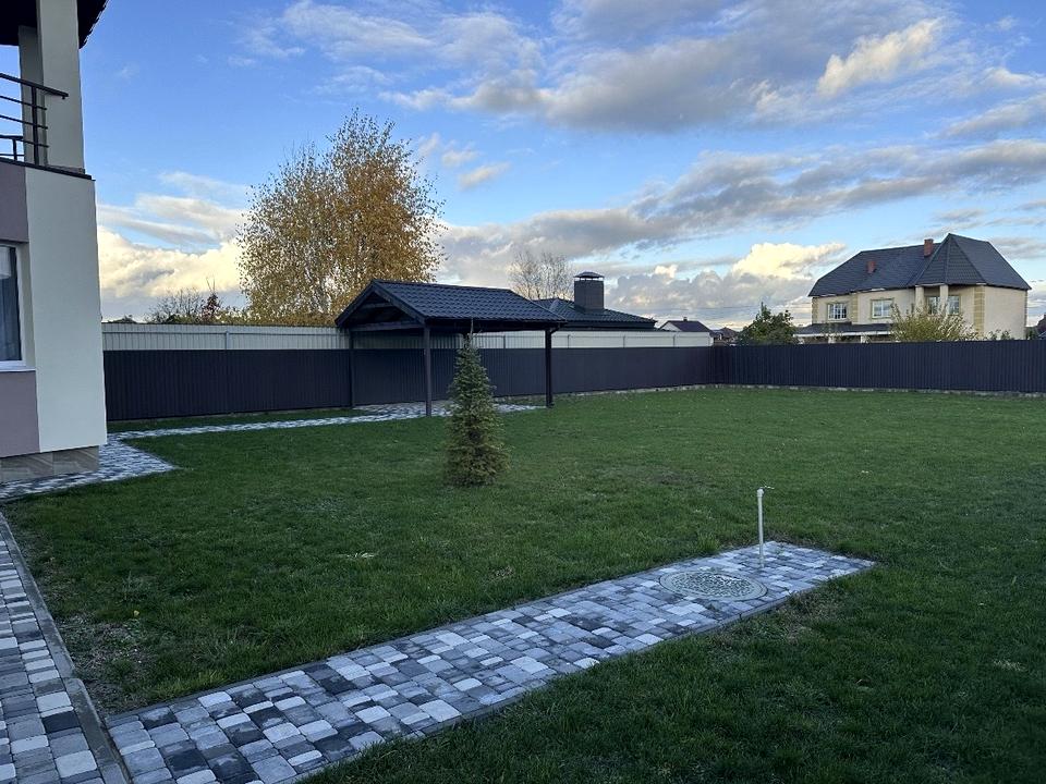Ділянка під будинком 10 соток , засаджена газонною травою , в дворі є альтанка.