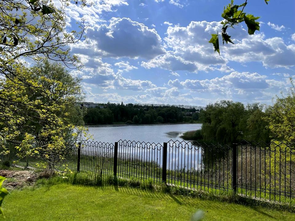 30 соток - доглянута, неймовірно красива територія, сад, декоративні дерева, вихід на озеро.