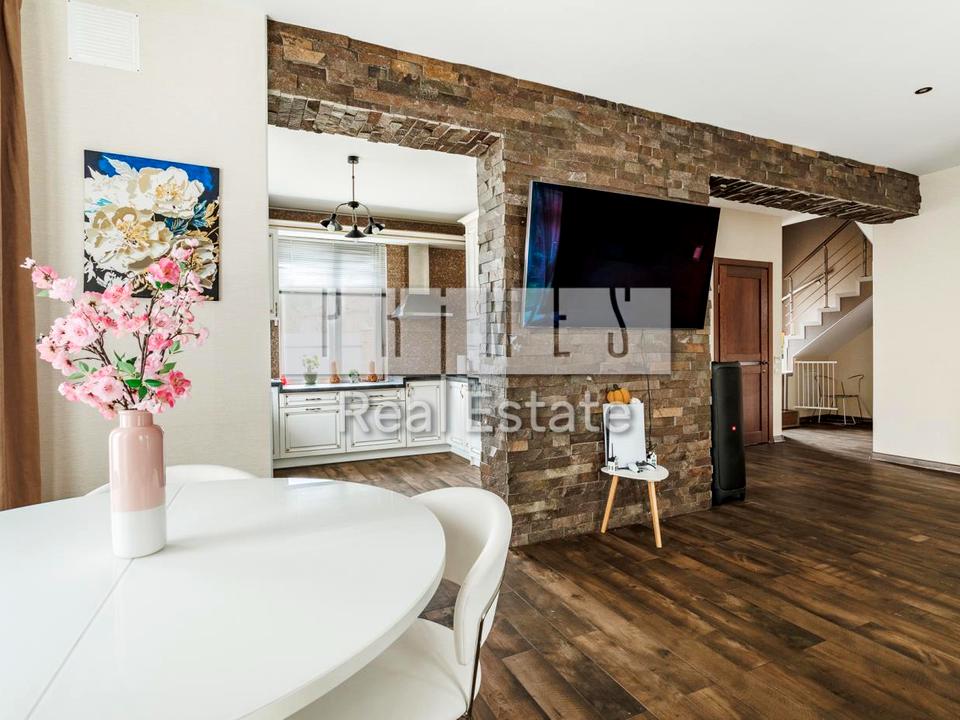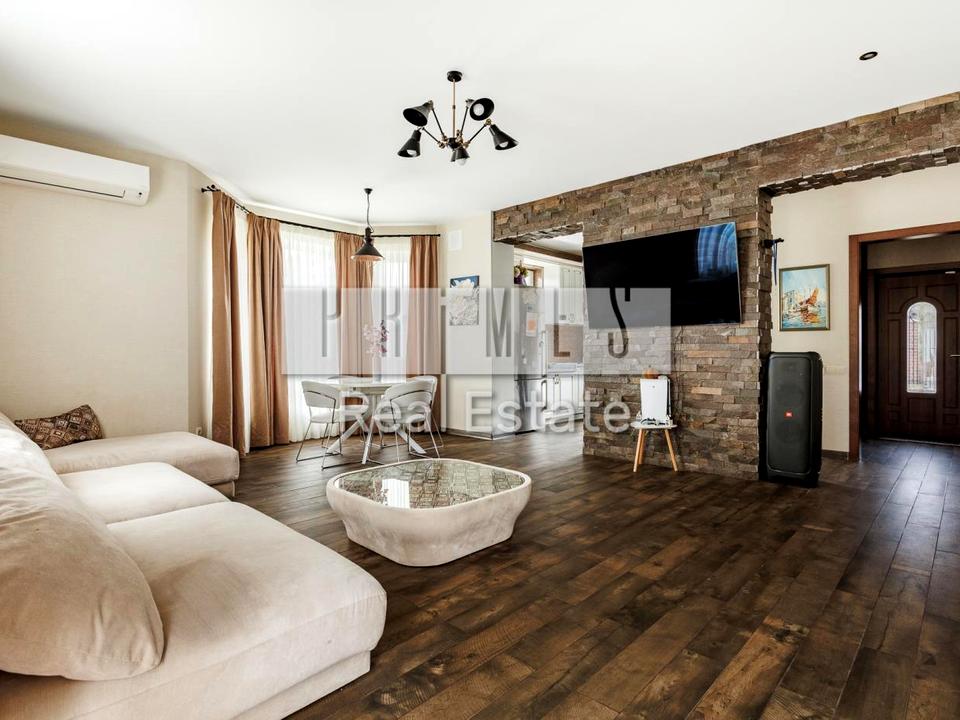Будинок, 2 поверхи, 4 кімнати. Матеріал стін - цегляно-монолітний, фундамент будинку - залізобетон, матеріал перекриттів - збірний залізобетон. Під'їзд до будинку - асфальт. Площа ділянки 10 соток. Висота стелі 3 метра. Планування кімнат Роздільне. Холодна вода - свердловина, гаряча вода - електричний бойлер. Опалення котел електричний. Покриття підлоги - ламінат. В будинку 1 балкон. Покриття даху - металочерепиця. У будинку є Телевізор, Супутникове ТБ, Підігрів підлоги, Кондиціонер, Пральна машина, Душова кабіна, Ванна, Холодильник, Мікрохвильовка, Посудомийна машина, Сигналізація, Автополив, Сад/город, Зона мангалу, Лазня. Своя каналізація. Загальний стан будинку - З ремонтом. Кількість санвузлів: 2. Є автономна електроенергія - генератор. Зовнішнє утеплення стін. Працює без світла - резервне живлення (акумулятори/генератор). Комісія за послуги 3 %